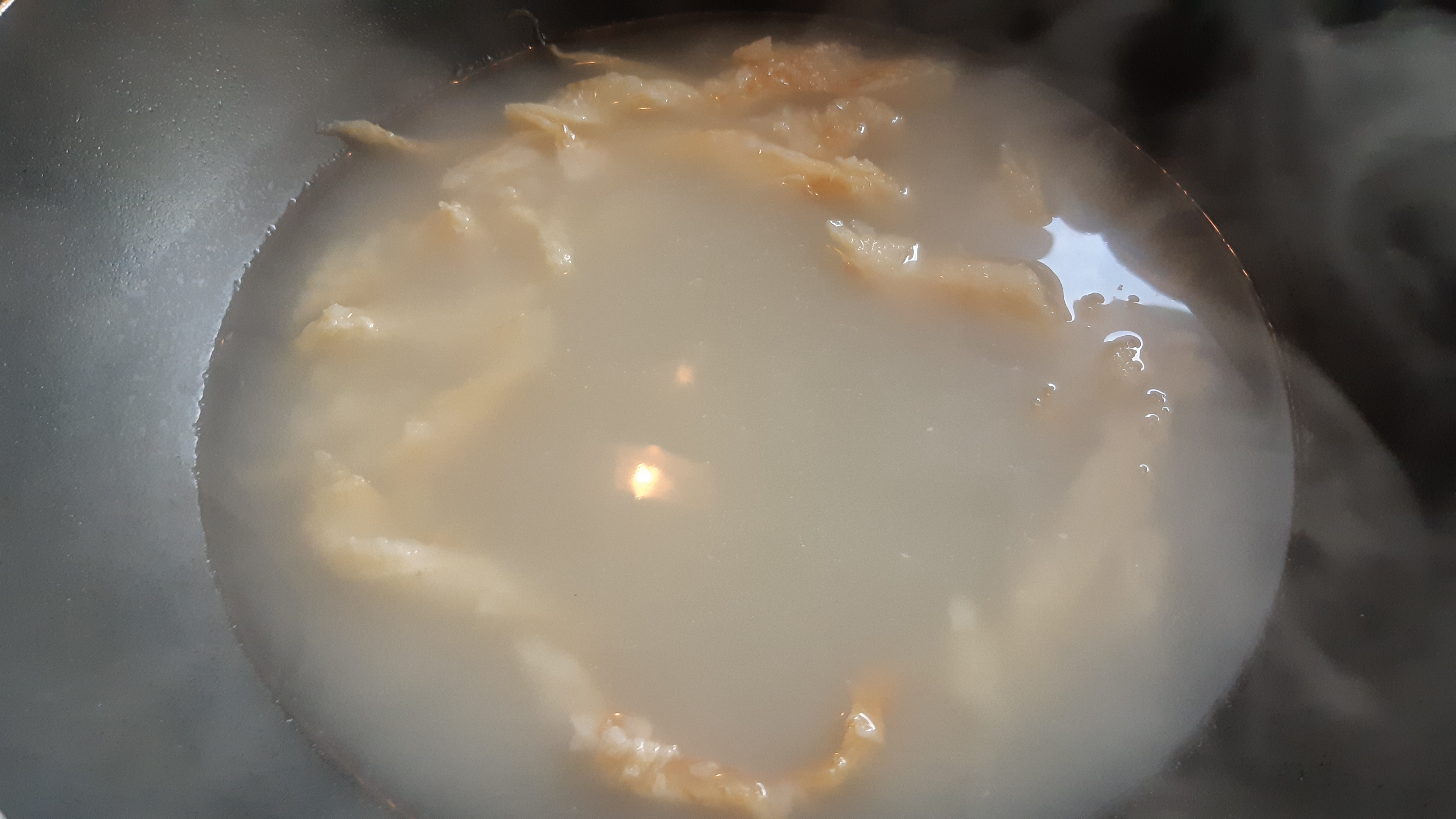 중불에서 20분 정도 끓이면 뽀얀 육수가 우러나옵니다